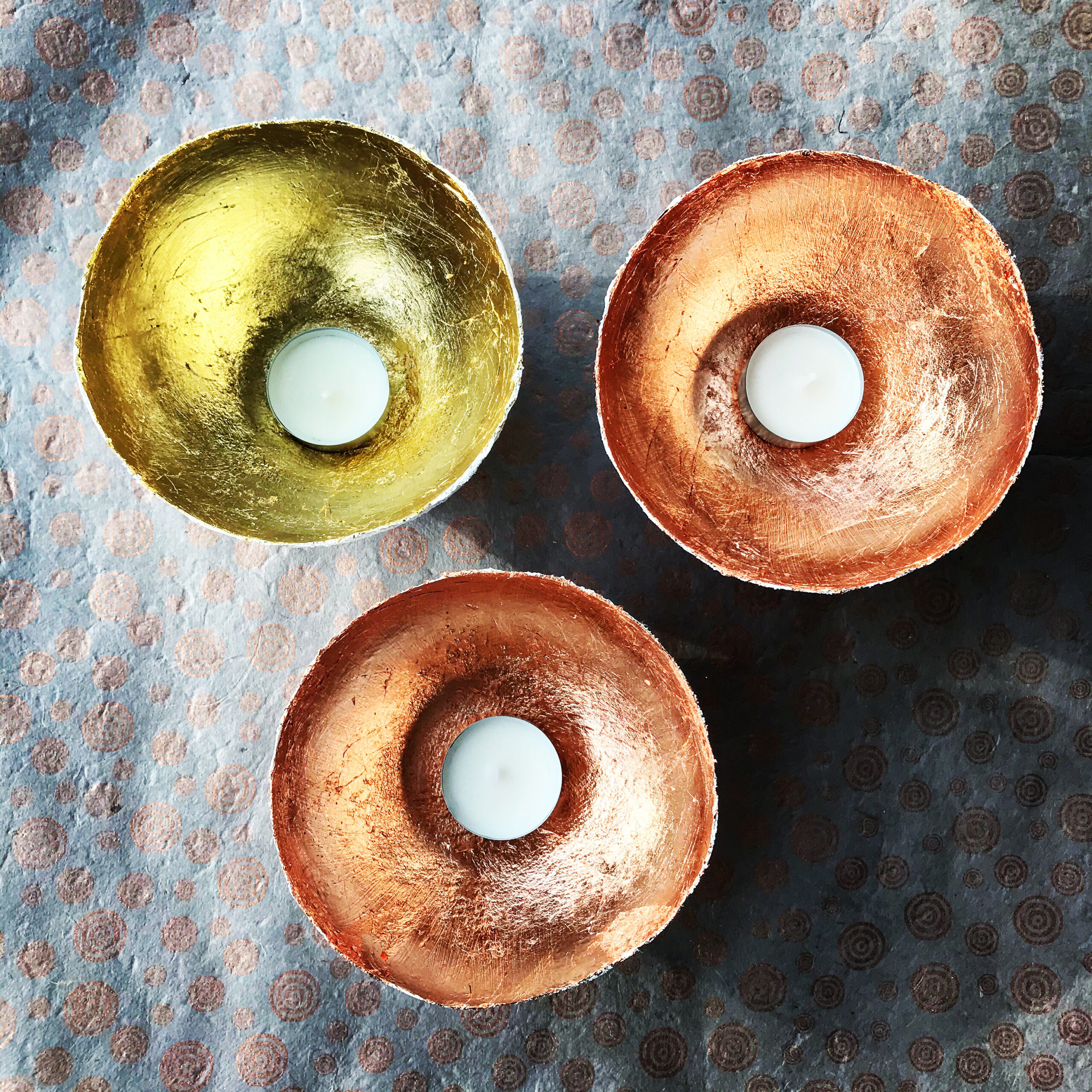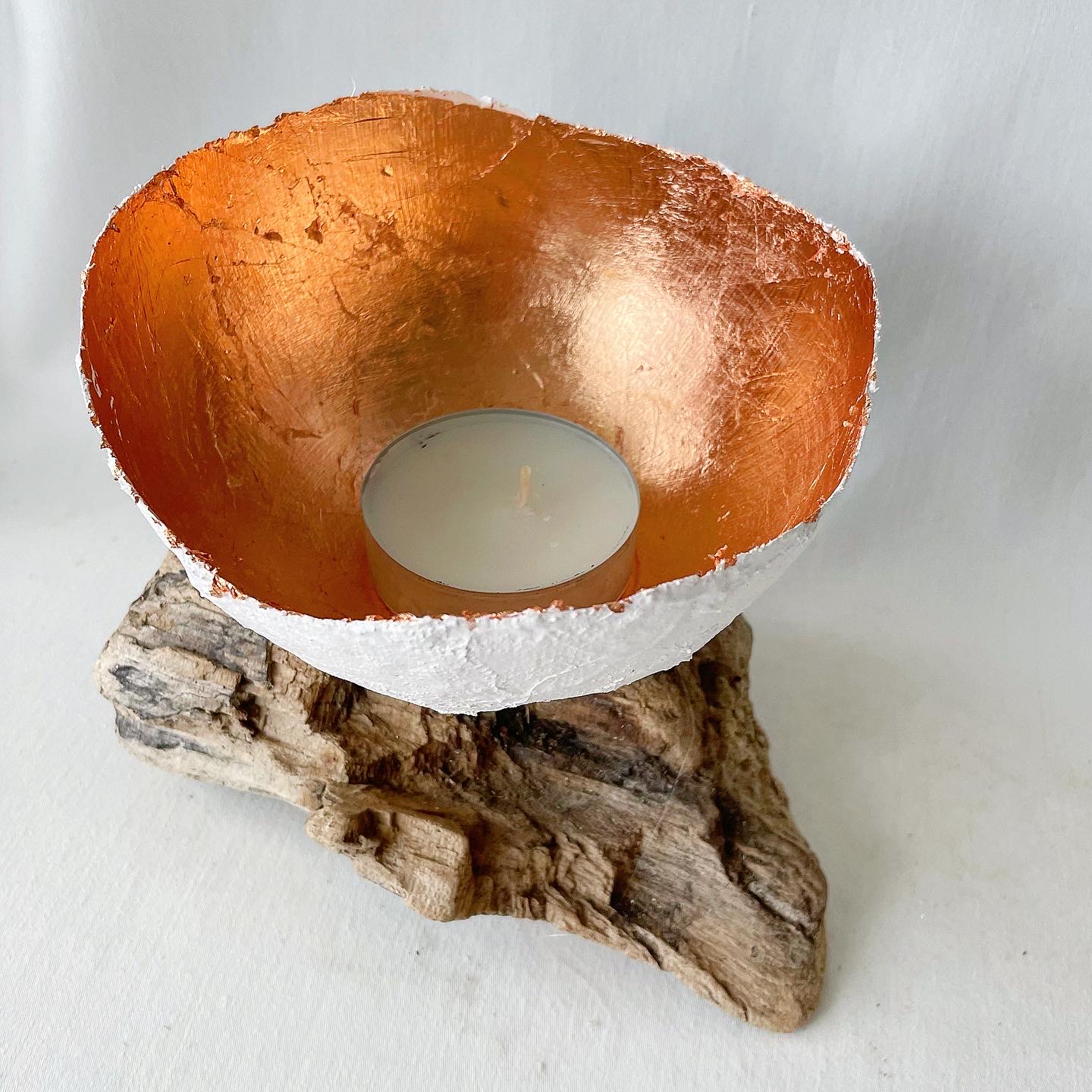 🌕 In diesem Workshop kannst Du, ganz nach Deinen Wünschen, ein wunderschönes Teelicht aus Gips und Blattgold (rosé oder gelbgold) gestalten